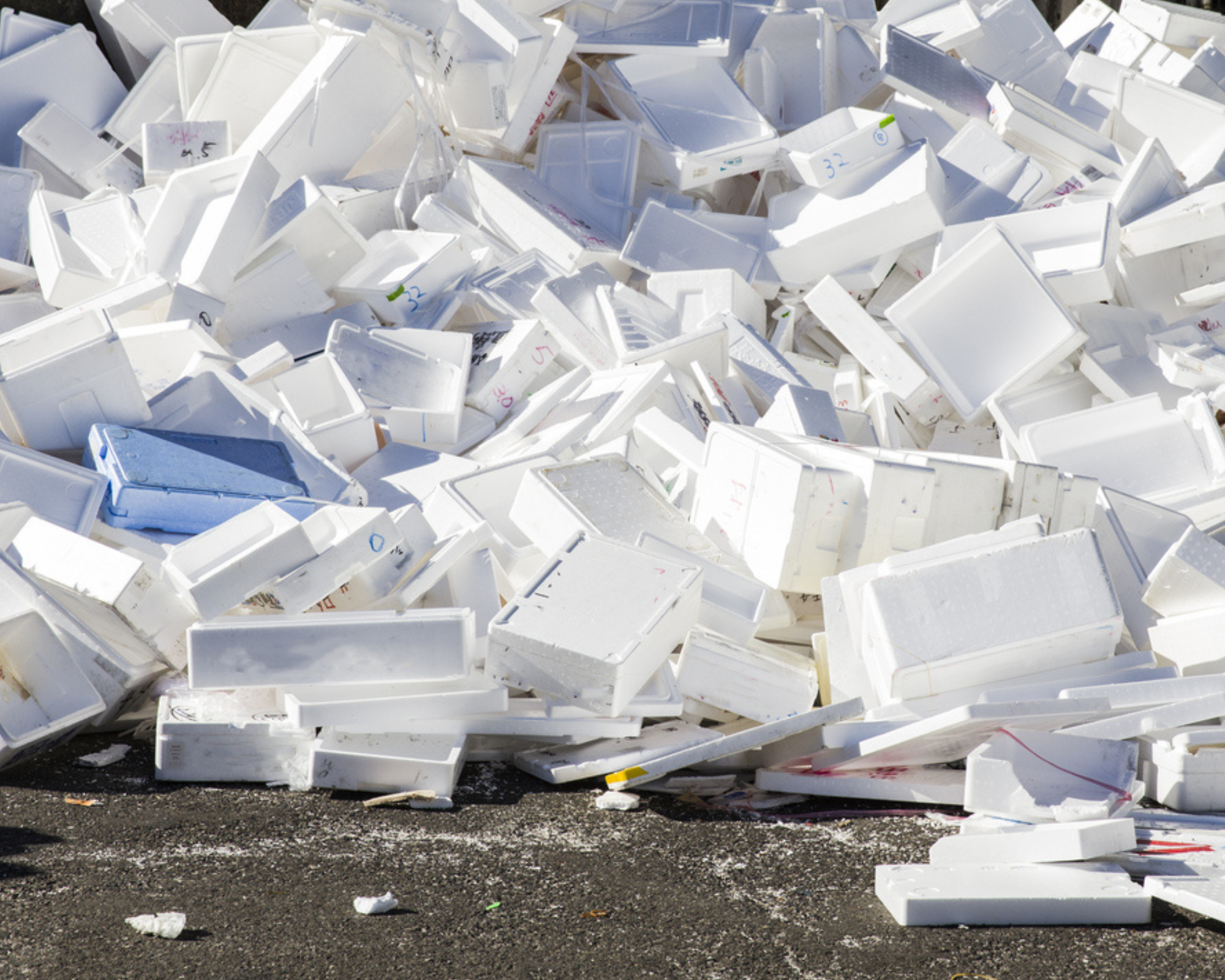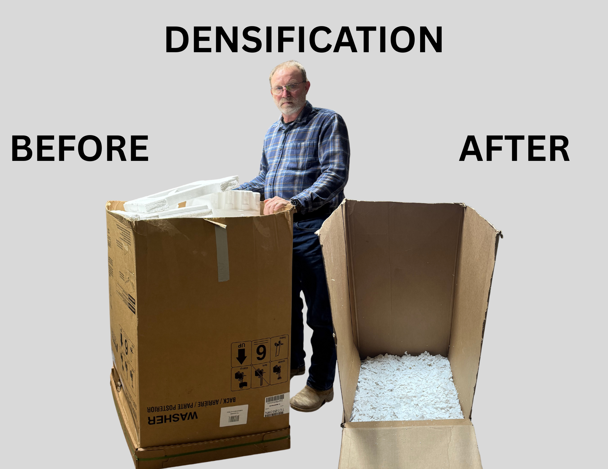 Waste foam that has been diverted and processed through the unit, exits as flat dense chips. In this compact form, the material can now exceed 40,000 pounds per semi-load, making it ideal for transportation and maximizing value for buyers.
